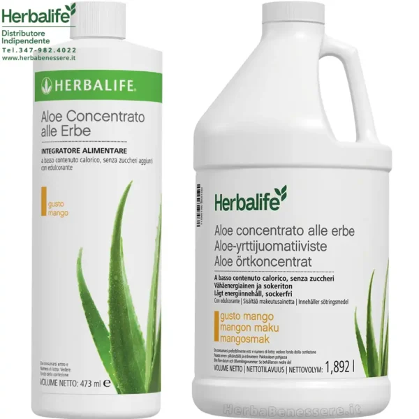Aloe gusto mango concentrato alle erbe Herbalife รจ ricavato da succo d’aloe vera con aromi naturali.