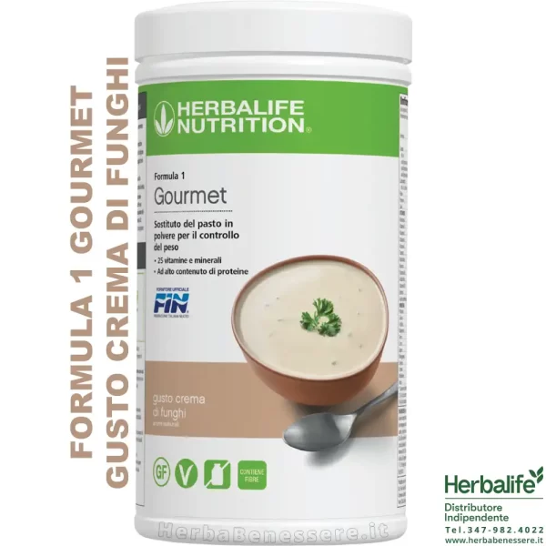 - Il Formula 1 Gourmet Herbalife gusto Crema di funghi è l’ideale per un pranzo o una cena da consumare nell’ambito di una dieta bilanciata e variata abbinato ad un sano stile di vita